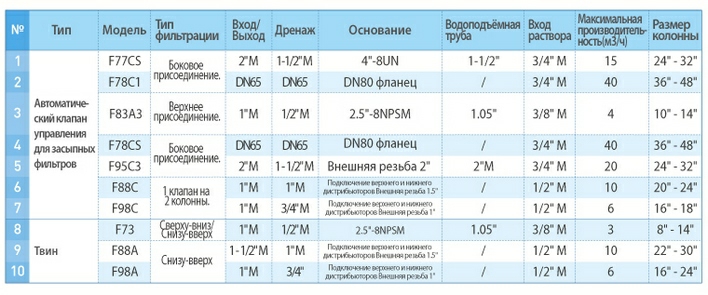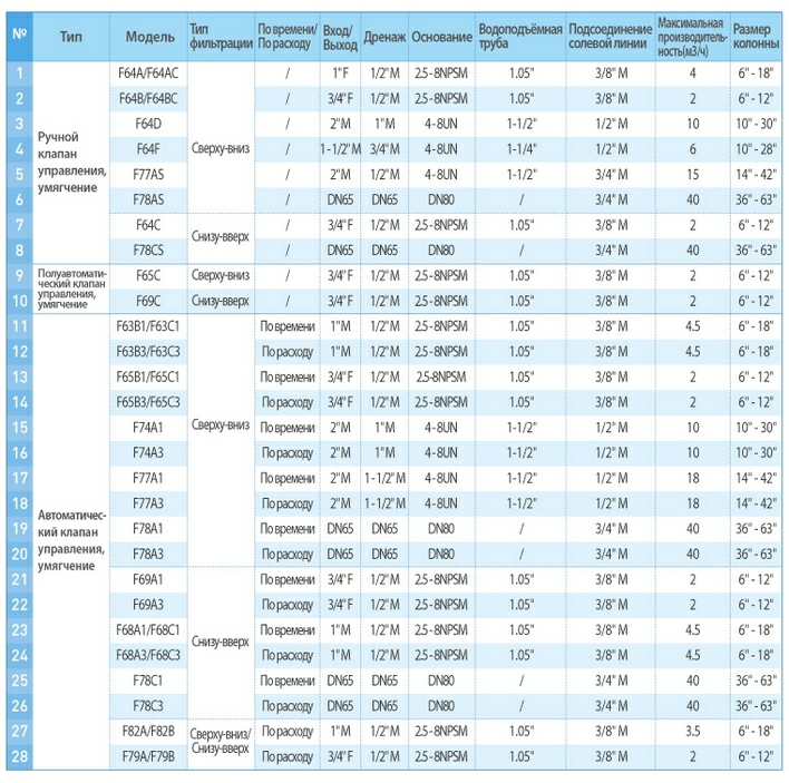 - по таймеру или по объему, для фильтрации или для умягчения, модели различной производительности